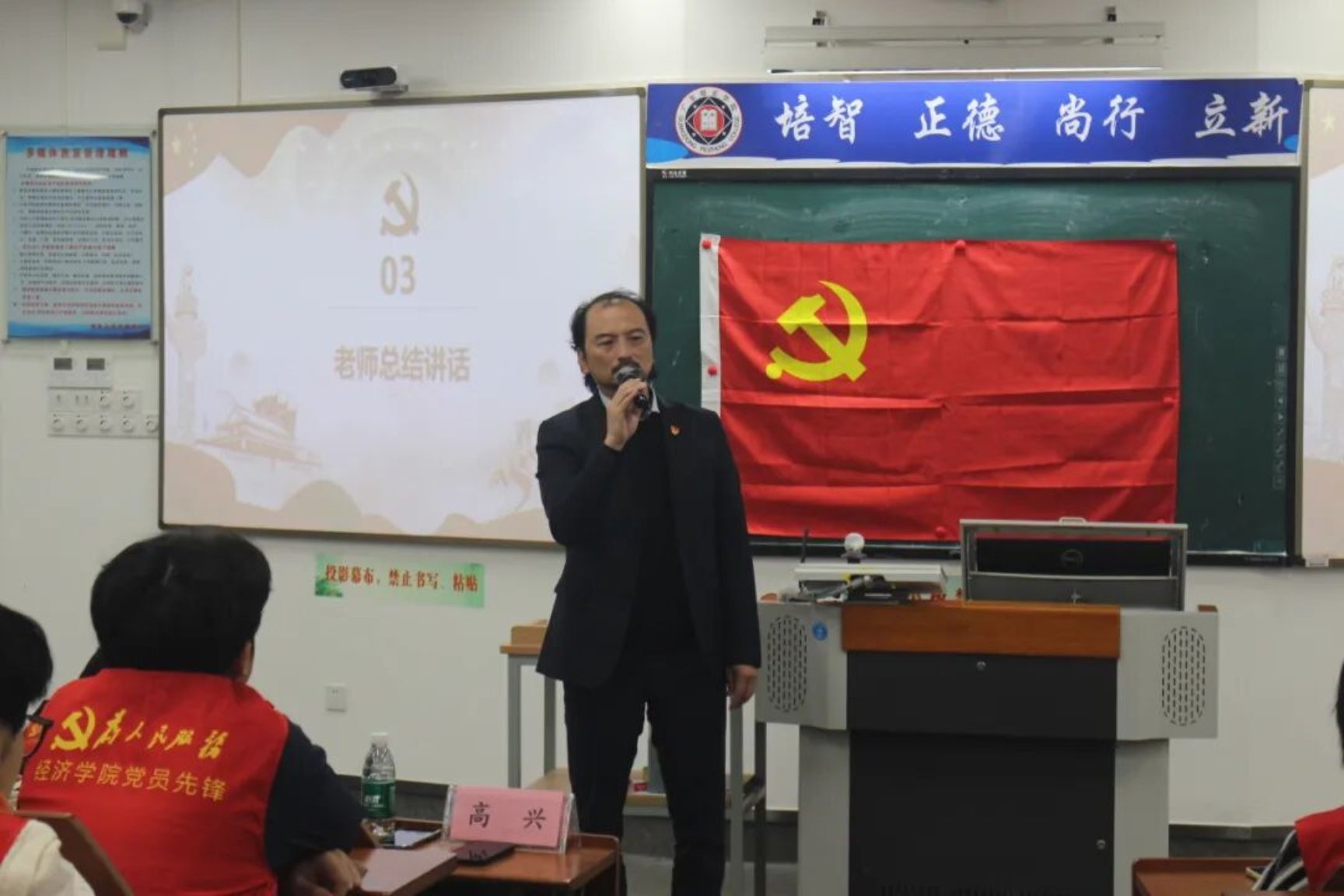 经济学院党委书记高兴老师认真听取了各位同志的发言并给予肯定,结合中央经济工作会议精神与各支部工作汇报进行综合点评,既肯定了实践组、宣传组及两个学生党支部在理论学习、服务实践和组织建设方面取得的扎实成效,也指出当前在成员参与度、工作细节把控等方面仍需提升;他强调全体党员同志要深刻领会“稳中求进、以进促稳”的经济工作导向,将宏观政策要求转化为具体行动,通过完善制度机制、创新活动形式持续深化党建与专业实践的融合。最后,高兴老师号召全体同志以奋发有为的姿态去迎接“十五五规划”的开局之年,积极投身学院工作,确保经济学院党建工作与党中央决策部署同频共振。