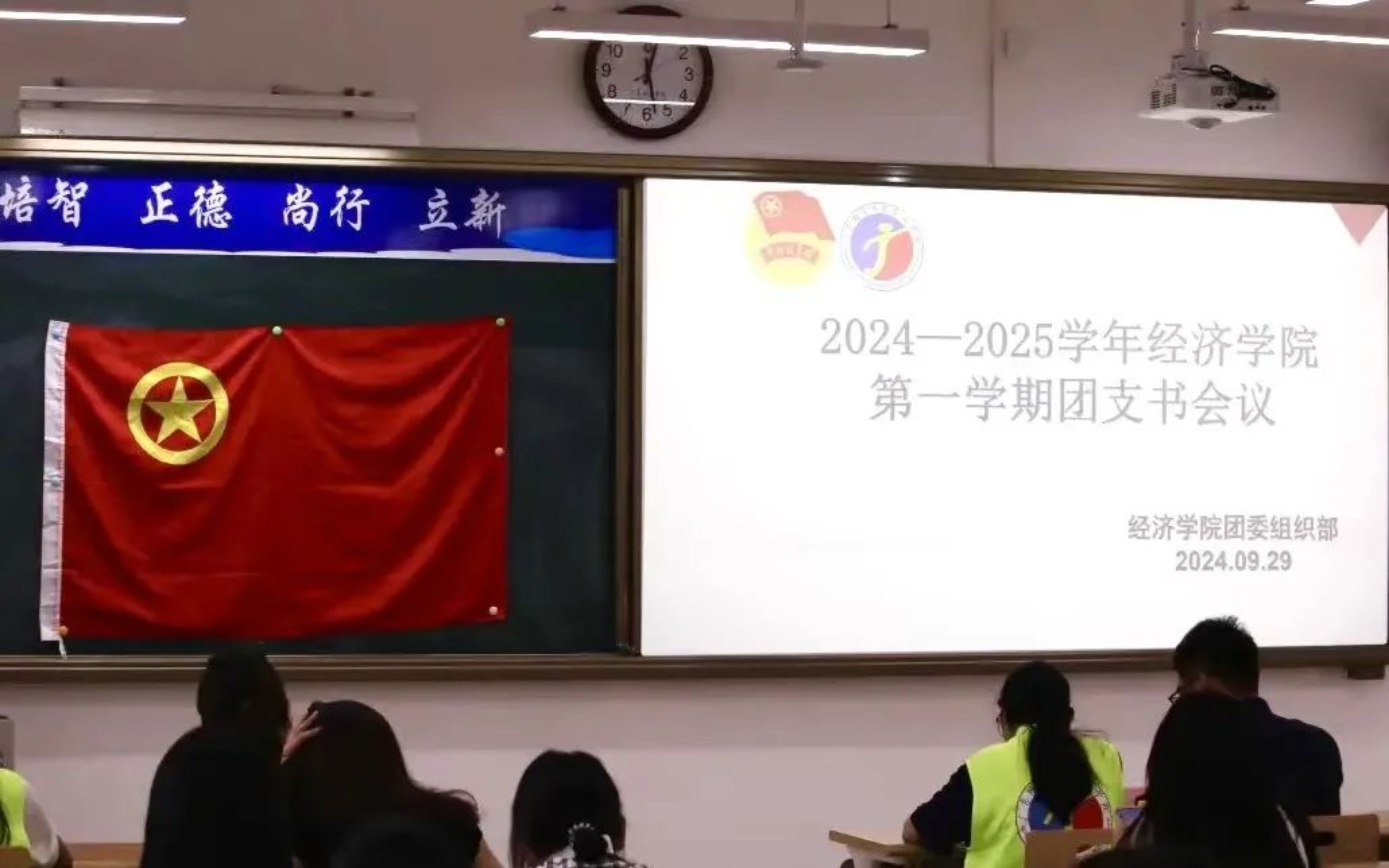 2024年9月29日中午,经济学院团委组织部在第五教学楼504室成功召开了2024-2025学年第一学期第一次团支书会议。此次会议旨在提高各团支部书记的工作效率和工作质量,进一步加强经济学院团委与各团支部书记之间的密切联系,确保团支部工作能够顺利开展。出席本次会议的人员有:经济学院团委书记蔡坤泰老师、组织部部长李文捷和各班级团支书。
