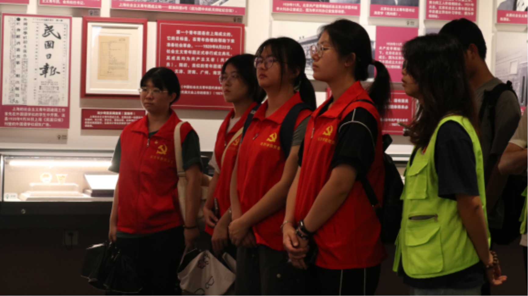踏入馆内,学员们跟随讲解员的步伐,仔细观看每一件展品,讲解员通过“历史召唤”、“潮起东园”、“青运新篇”、“牢记使命”等四个部分生动讲述了中国共产主义青年团历史征程,青马班学员和团支部成员置身其中,仿佛亲历共青团百年征程,在沉浸式的学习中,触摸到了共青团始终与党同心、与人民同行的初心脉络,深刻领悟到身为新时代青年所肩负的光荣使命,胸中激荡起传承与奋进的澎湃力量。