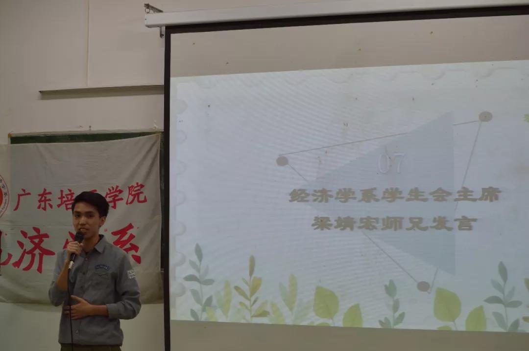 然后,经济学系学生会主席梁靖宏师兄在发言中提到:通过三下乡,与最广大的农民群众深入接触、沟通和交流,充实自己,提高自己处理问题的能力、应变能力和分析能力。同时,我们在与社会的融合中进一步认识自我、发展自我、完善自我,适应环境。