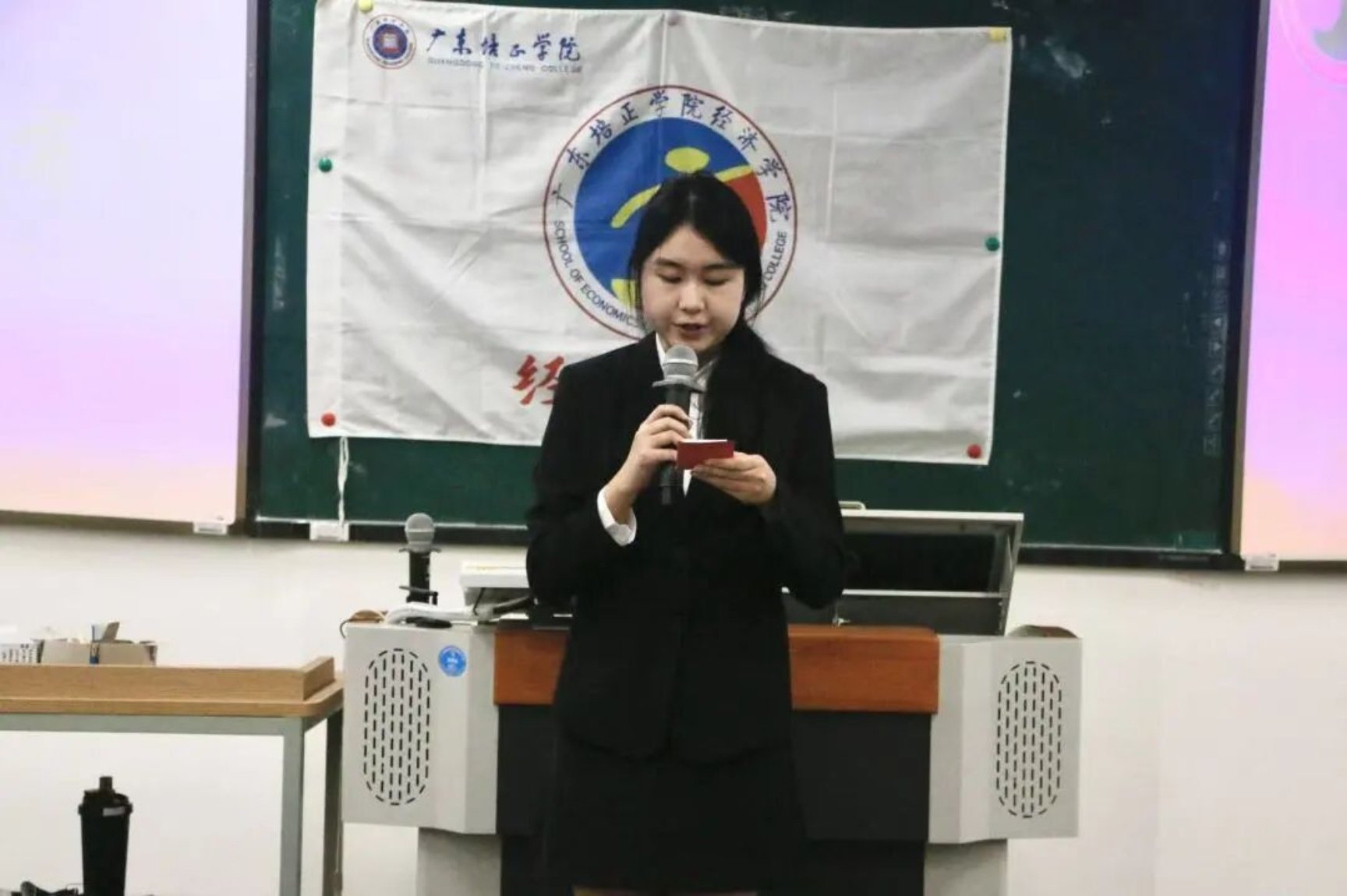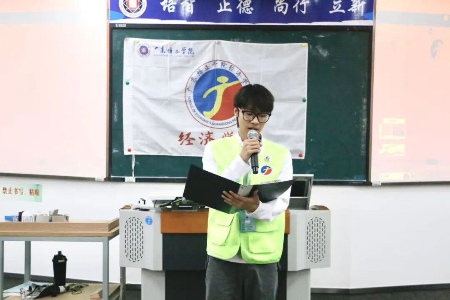 为总结我院学生会阶段性工作成效、规范工作流程。2025年12月18日中午,广东培正学院经济学院于第五教学楼609室顺利召开学生会工作人员述职评议大会。出席此次会议的评委嘉宾有:经济学院党委书记高兴、经济学院团委书记兼学生会指导老师蔡坤泰、经济学院辅导员张舒宁、经济学院辅导员孙嘉,以及13位学生代表。本次大会由经济学院公关司仪队的陈萌希同学主持。