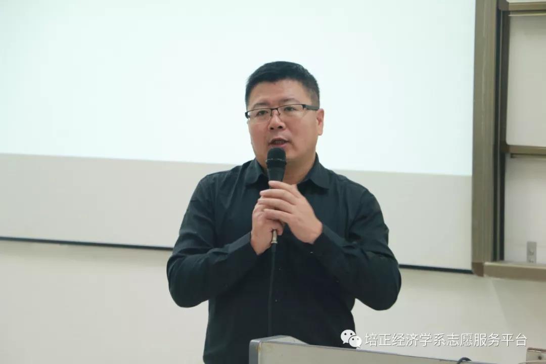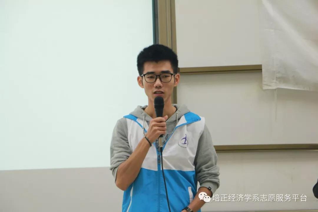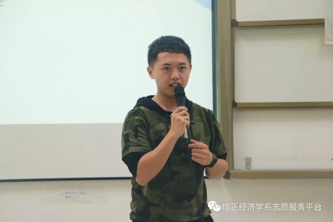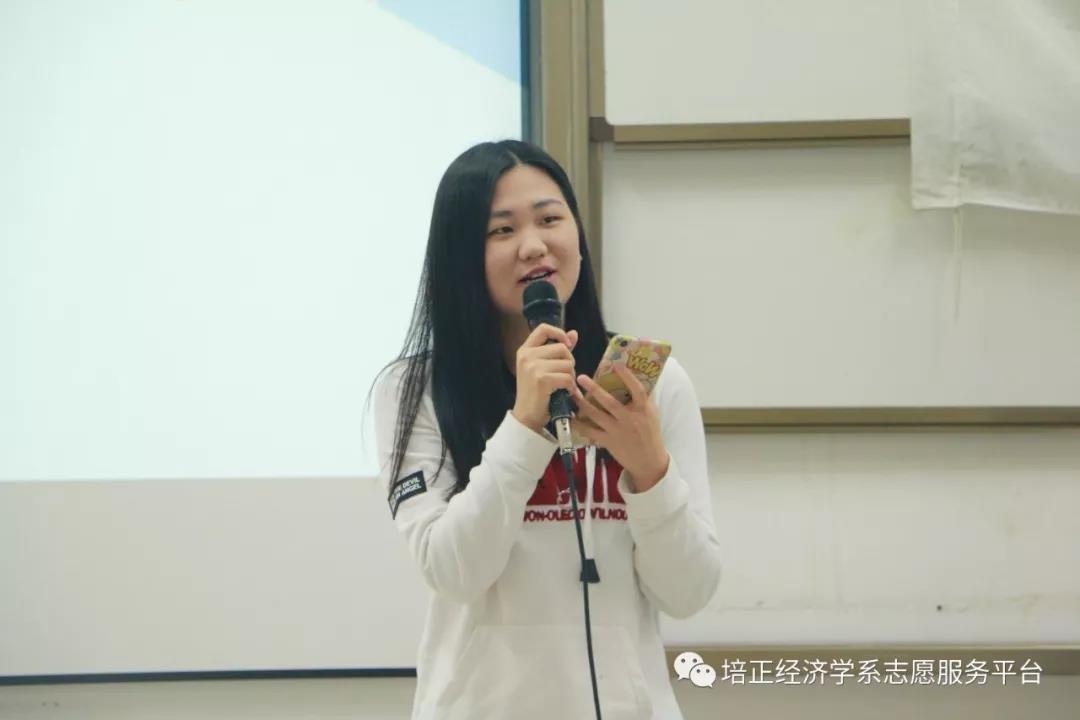 紧接着,学生第二党支部书记叶梓龙老师和第十二届经济学系学生会志愿者分队队长黄文秋师姐对本期“give me five”进行了活动致辞。