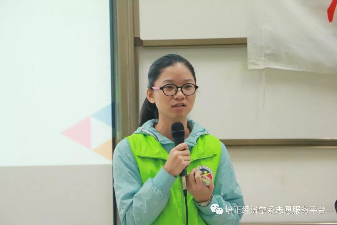 会议继续,由经济学系团总支志愿实践部部长陈祖怡、外国语学院团委志愿实践部部长陈美莲和计算机科学与工程系团总支志愿实践部部长兼拓展部部长邹境文致辞。