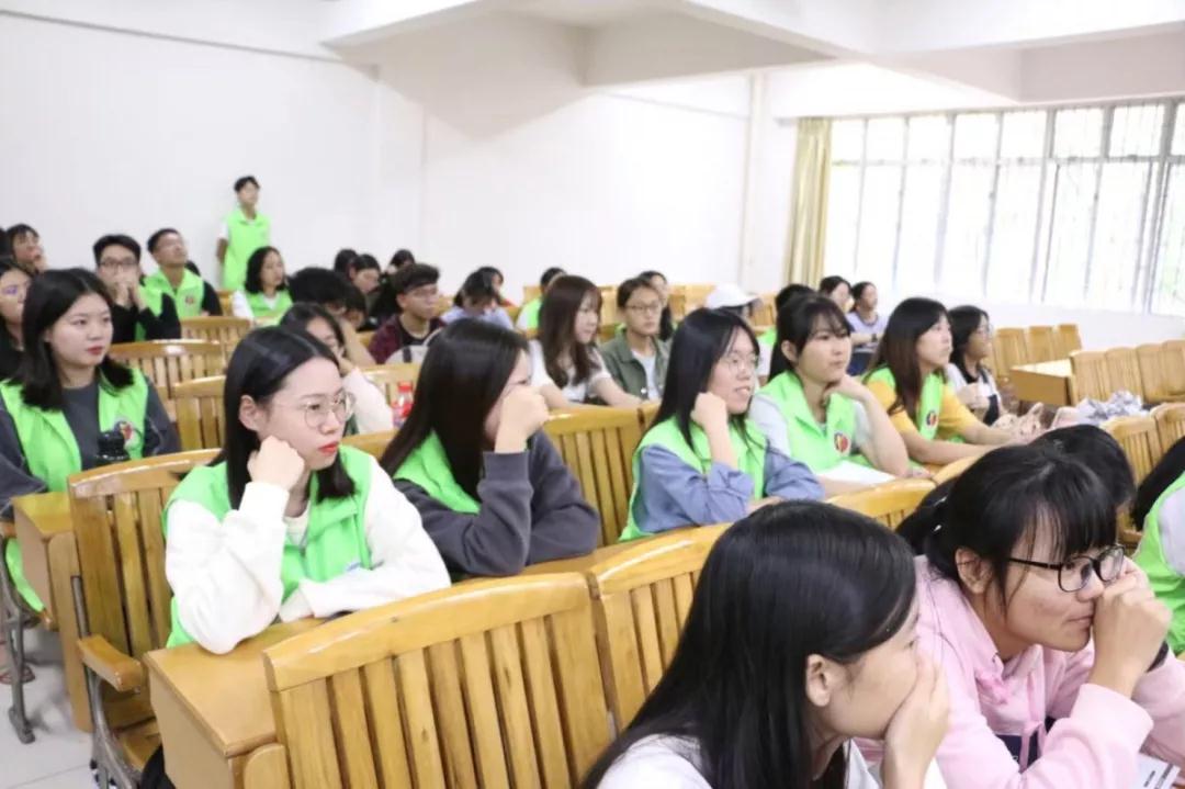 随后,主持人邀请了三位嘉宾分享他们参与此次活动的感受,他们分别是经济学院团委志愿实践部部长兼学生会志愿者分队队长谢家红、数据科学与计算机学院团委志愿实践部部长邵广生,外国语学院团委志愿实践部部长欧凯怡。他们都认为“Give Me Five”活动不仅锻炼了自己,还服务了他人。同时他们还称赞了志愿者们的热情参与,并感谢他们的辛苦付出。
