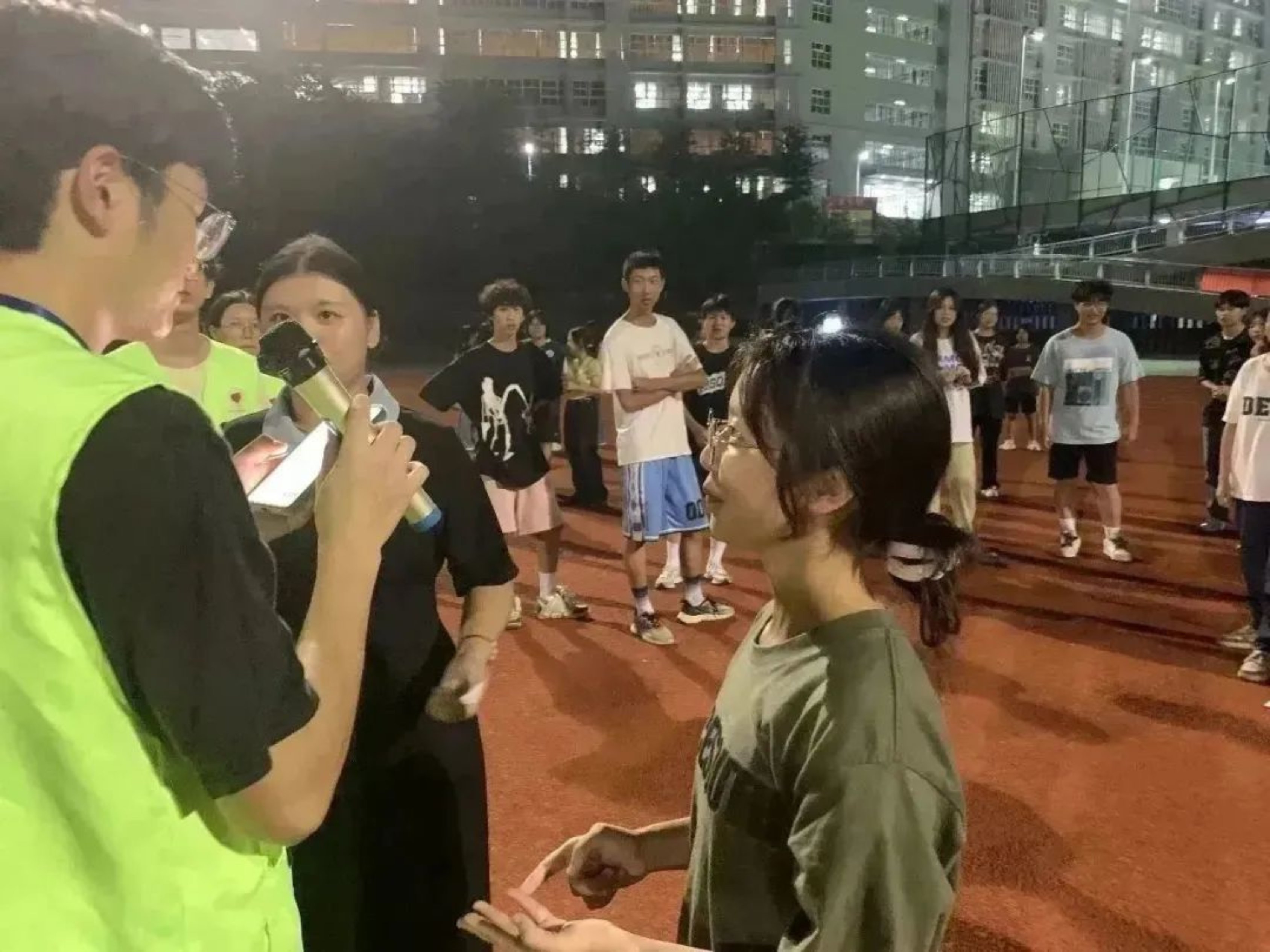 首先开始的是热身游戏:混沌八三夭。全体成员围成一个圆,伴随着音乐转圈。主持人先给出一个数字口令,同学们根据数字组成对应人数的队伍,待成员组好队后,再加上加号或减号说出下一个数字让成员再次分组。游戏共进行三轮,三轮后仍未淘汰的成员获胜。热身游戏调动了气氛,使得同学们迅速活络起来,即将进入正式游戏。